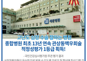 고난도 심장 수술 잘하는 병원 부천세종병원, 종합병원 최초 13년 연속 관상동맥우회술 적정성평가 1등급 획득