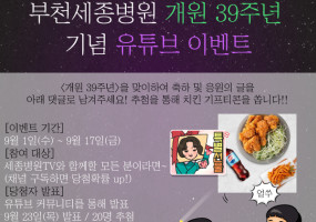 [이벤트] 부천세종병원 개원39주년을 축하해주세요! 세종병원TV 유튜브 이벤트
