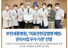 환자 안전과 감염 예방에 집중합니다! 부천세종병원, '의료관련감염병 예방•관리사업 우수기관' 선정