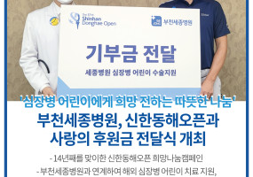'심장병 어린이에게 희망 전하는 따뜻한 나눔' 부천세종병원, 신한동해오픈과 사랑의 후원금 전달식 개최