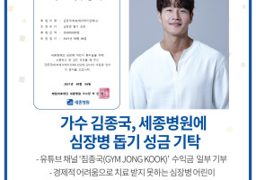 "심장병 아이들을 위한 뜻 깊은 기부", 가수 김종국 세종병원에 심장병 돕기 성금 기탁!