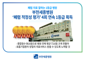 ‘폐렴 치료 잘하는 1등급 병원’ 부천세종병원, ‘폐렴 적정성 평가’ 4회 연속 1등급 획득