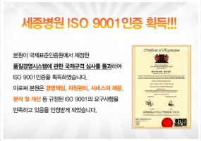 세종병원 ISO 9001인증 획득!!!